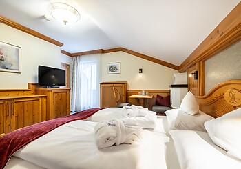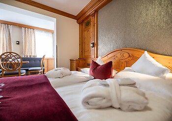 Traditionell und alpin, aber mit Blick in die Zukunft, rustikal und bodenständig, aber mit einem Hauch Luxus – so würden wir unsere Zimmer beschreiben. Die hochwertigen Holzmöbel und feinen Stoffe verleihen den Räumlichkeiten eine warme und einladende Atmosphäre. Die gute Luft, Ruhe und die Vorfreude auf einen weiteren spannenden Urlaubstag lassen Sie hier besser schlafen als je zuvor und alle Alltagsgedanken an der Türschwelle abschütteln. Finden Sie hier das passende Zimmer.