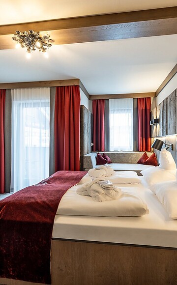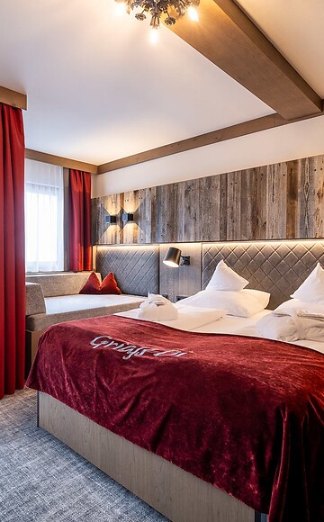 Dieses Doppelzimmer der Kategorie 2 ist etwa 23m² groß und in Altholz-Optik gehalten: perfekt für alle, die den Look der urigen Bauernhäuser lieben. Zur Ausstattung gehören ein Badezimmer mit Dusche und separatem WC, Balkon, Kabel-TV, Telefon, Föhn, Safe, eine Kuschelecke, sowie kostenloses WLAN.