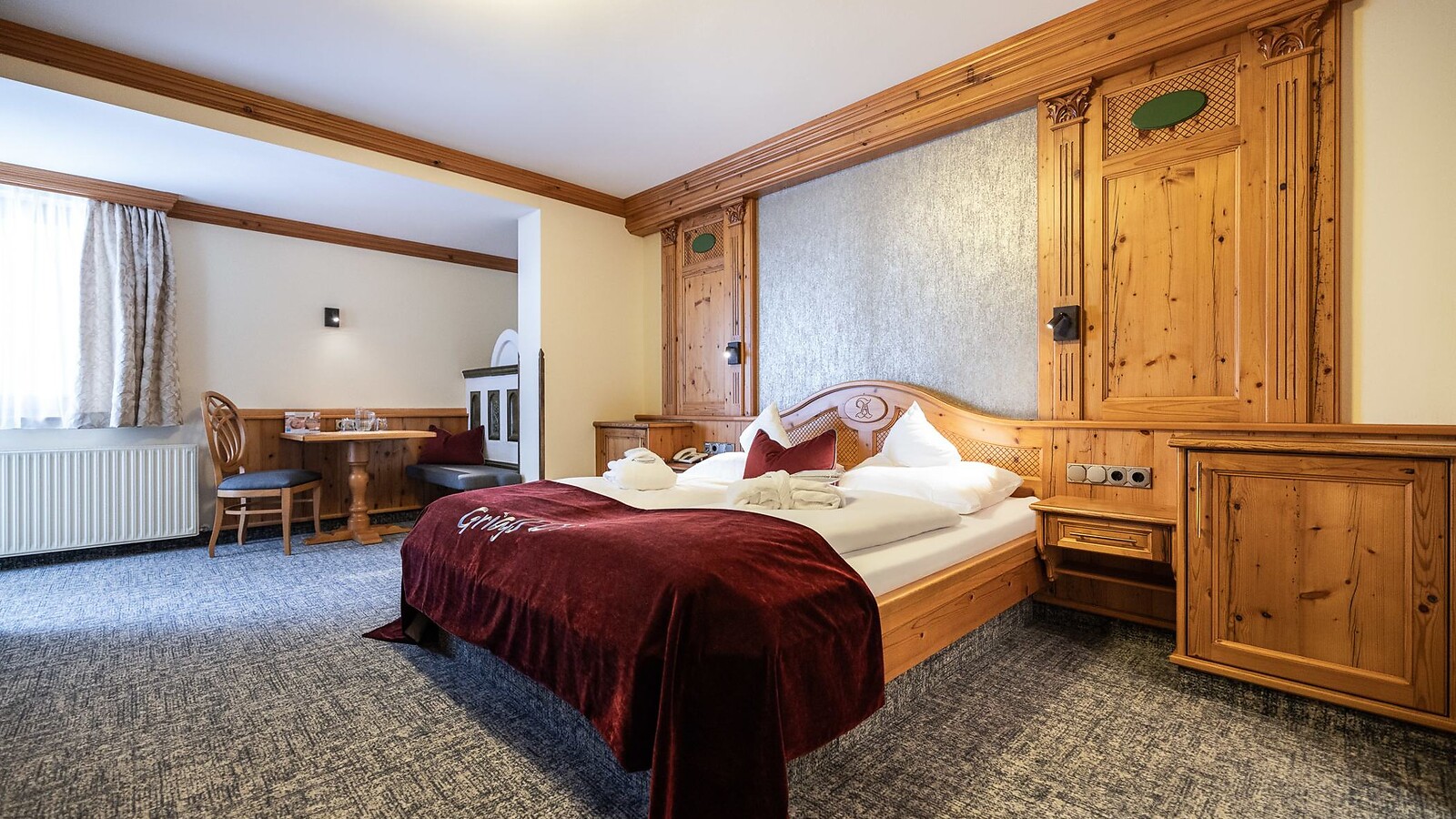 33m² für 2-4 Personen mit einem gemütlichen Doppelbett sowie einem Stockbett, Badezimmer mit Dusche und separatem WC, Kachelofen, Balkon, Kabel-TV, Telefon, Föhn, Safe und WLAN. Zu Ihrer Sicherheit können im Stockbett oben nur Kinder bis maximal 15 Jahre, 70 kg und 1,70 m Körpergröße schlafen.