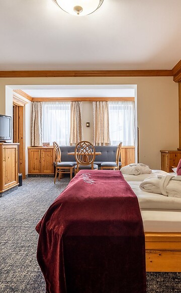 33 m² for 2–4 people with a cozy double bed and a bunk bed, bathroom with shower and separate toilet, walk-in closet , balcony, cable TV, telephone, hairdryer, safe, and Wi-Fi.
