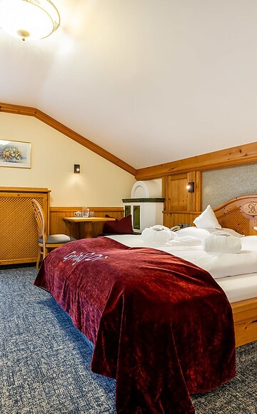 They are about 20 m² in size and feature a bathroom with shower & toilet, a cozy double bed, balcony, cable TV, telephone, hairdryer, safe, and free Wi-Fi. Some rooms have sloping ceilings. Depending on the room, there may be slight differences from the pictures shown.